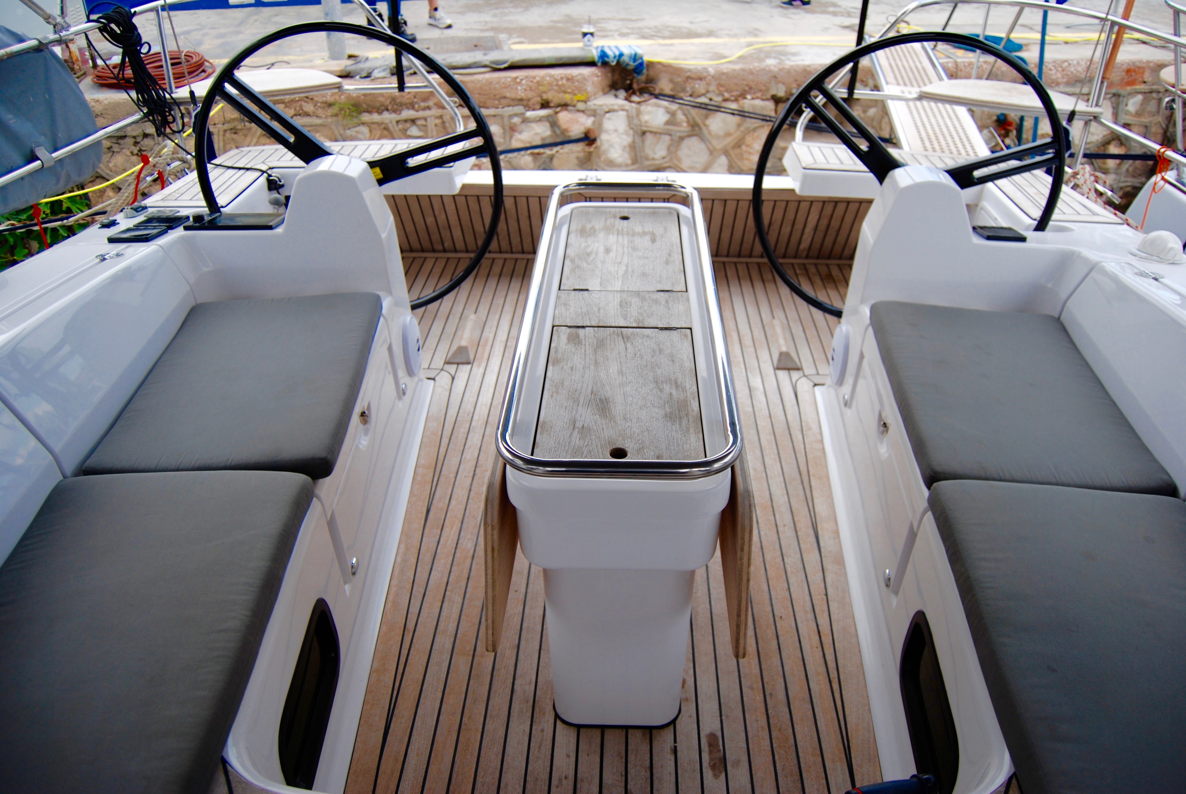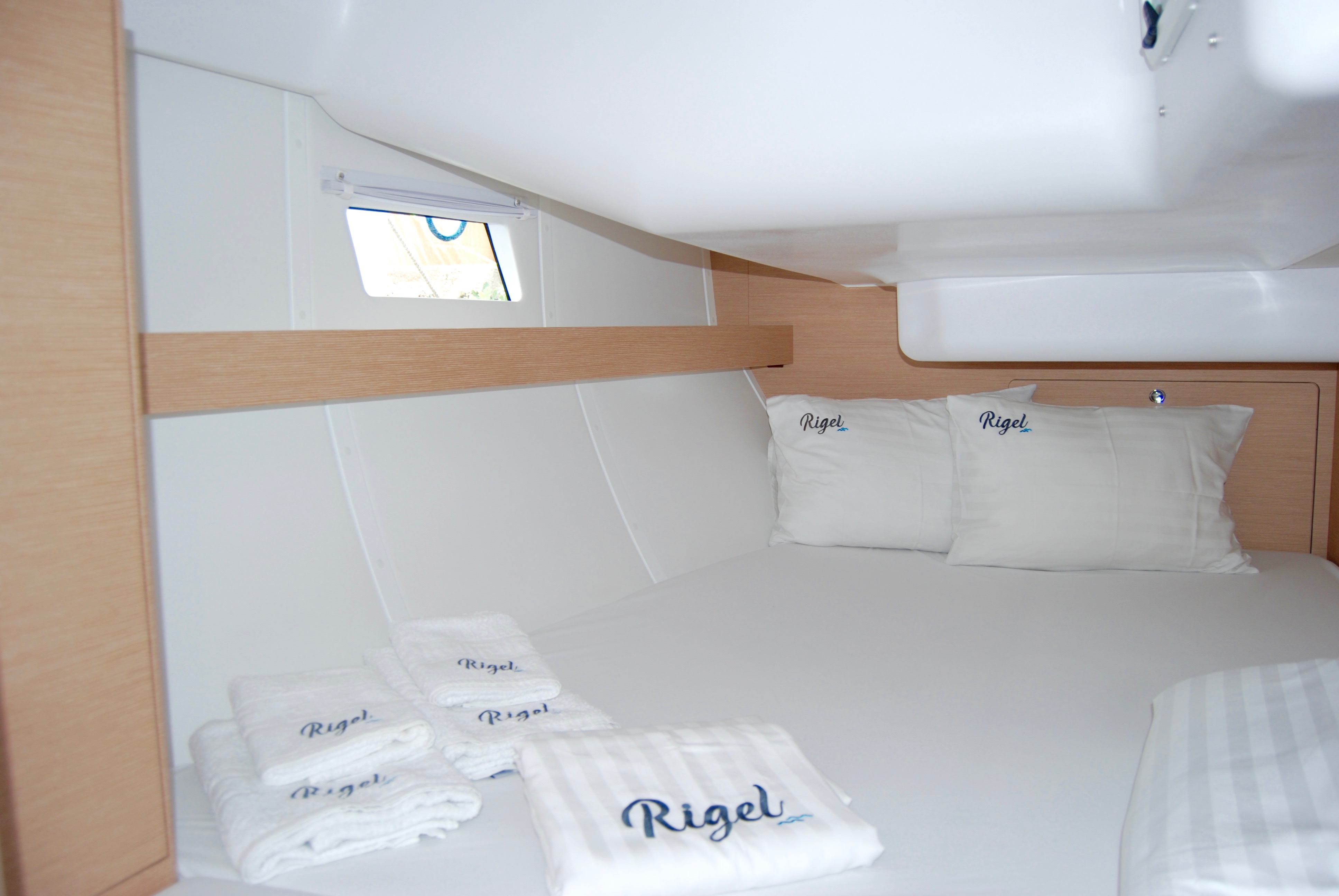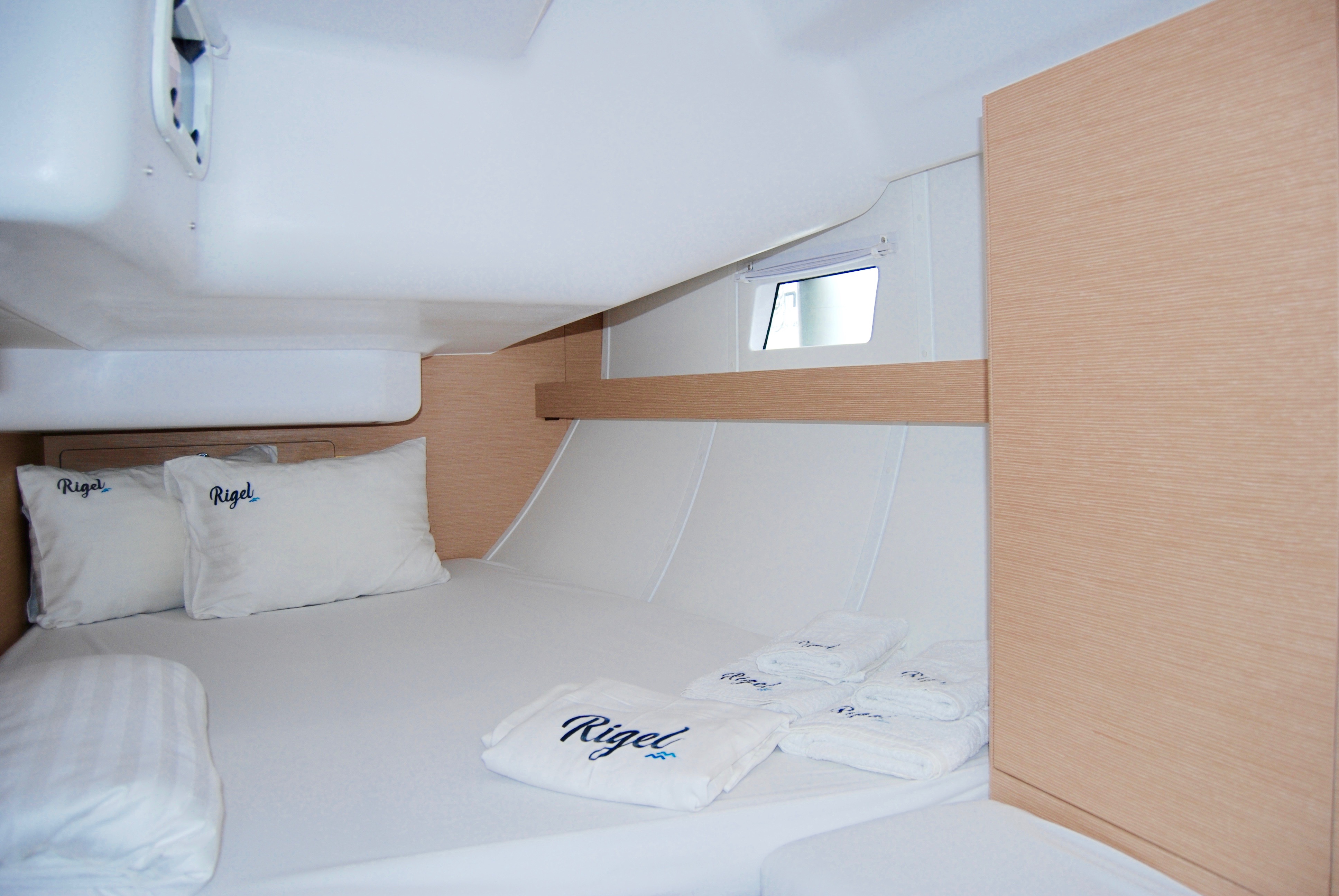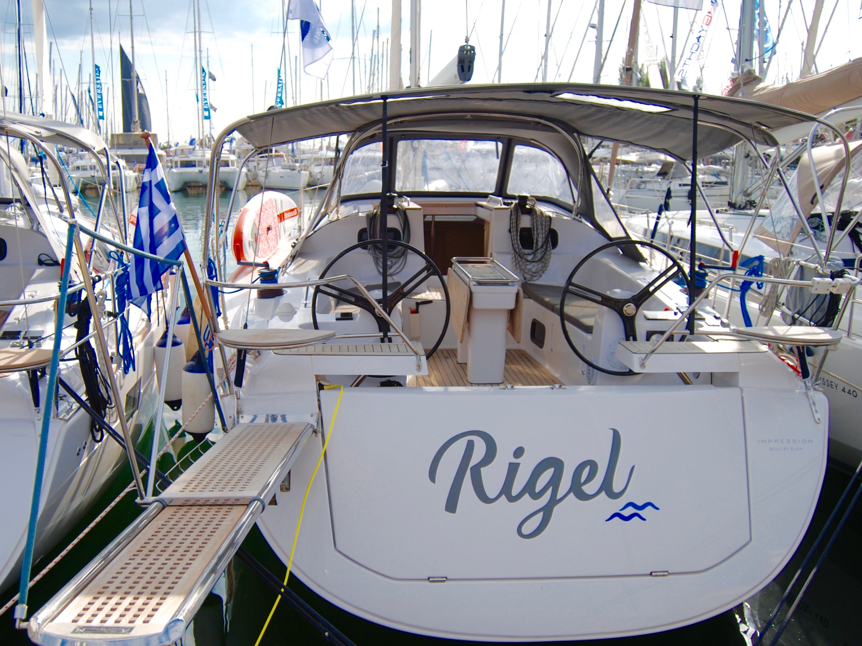 Sailing yacht, year of build: 2018, Alimos Marina, Athena, model: Elan Impression 45 Rigel (Electric Heads, Inverter), cabins: 4, heads: 2, berths: 10. The yacht has standard charter equipment including autopilot, electric anchor winch, Bimini top, sprayhood, GPS plotter, depth sounder, wind sensor, log, dinghy, Wi-Fi.