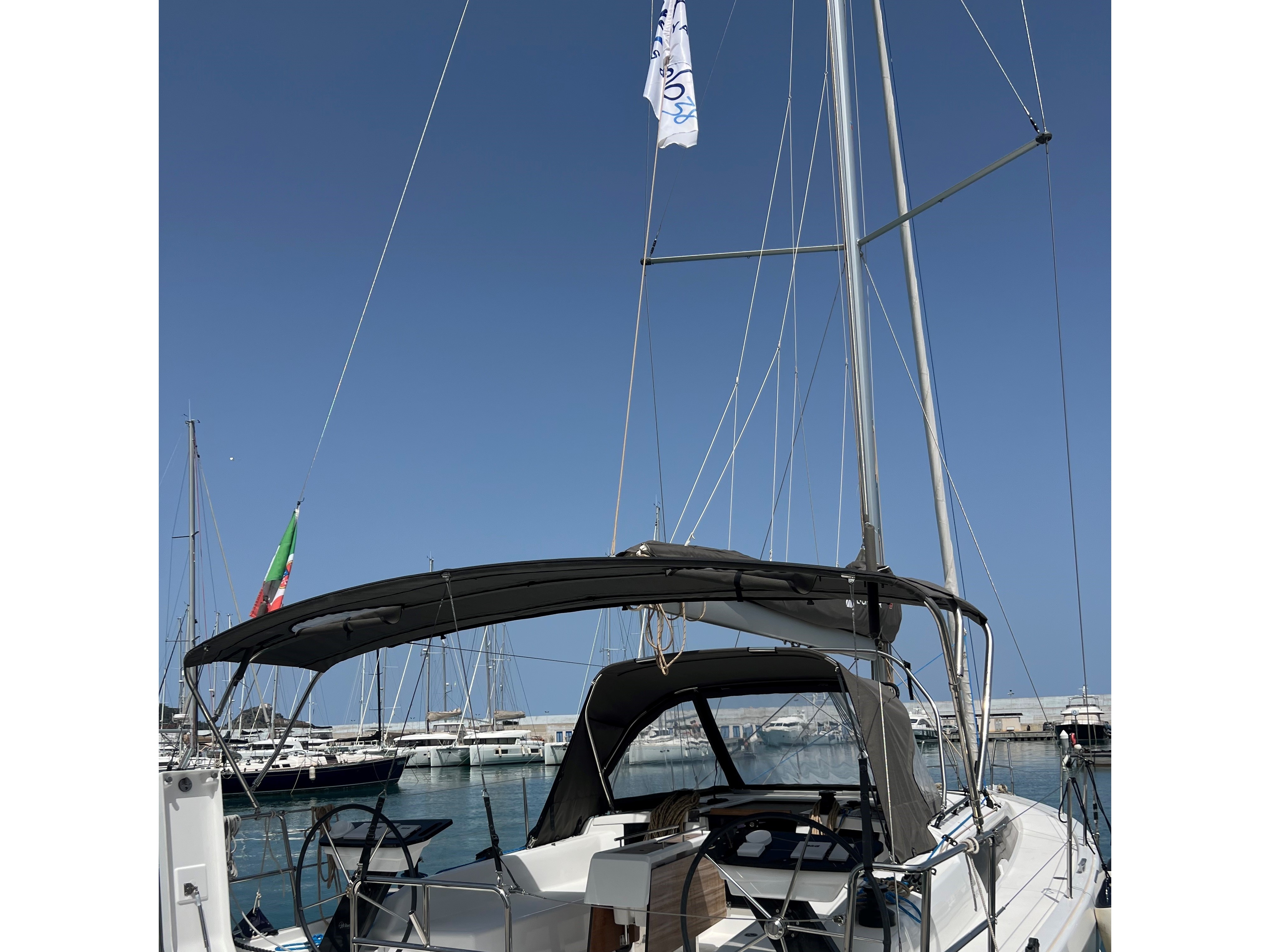Sailing yacht, year of build: 2024, Capo d'Orlando Marina, Capo d Orlando, model: Dufour 37 Jojo', cabins: 3, heads: 1, berths: 8. The yacht has standard charter equipment including autopilot, electric anchor winch, Bimini top, sprayhood, GPS plotter, depth sounder, wind sensor, log, dinghy, Wi-Fi.