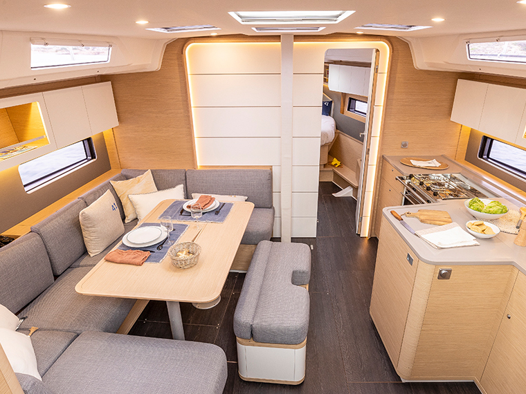 Sailing yacht, year of build: 2024, Marina di Portisco, Portisco, model: Dufour 41 Mahsa, cabins: 3, heads: 3, berths: 6. The yacht has standard charter equipment including autopilot, electric anchor winch, Bimini top, sprayhood, GPS plotter, depth sounder, wind sensor, log, dinghy, Wi-Fi.